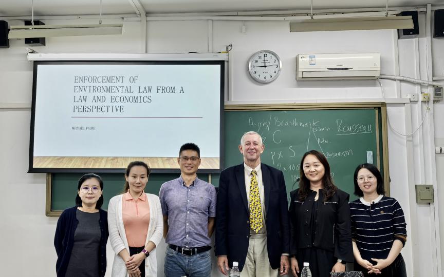 The subject of Professor Faure's lecture was “Enforcement of Environmental Law from a Law and Economics Perspective.” The event was gracefully moderated by Associate Professor Yan Houfu of the Law School of Beijing Normal University. Joining as esteemed panelists were Associate Professor Zhao Chenguang and Associate Professor Yang Chao, also from the Law School of Beijing Normal University. The lecture drew an engaged audience, with over 30 law students in attendance.