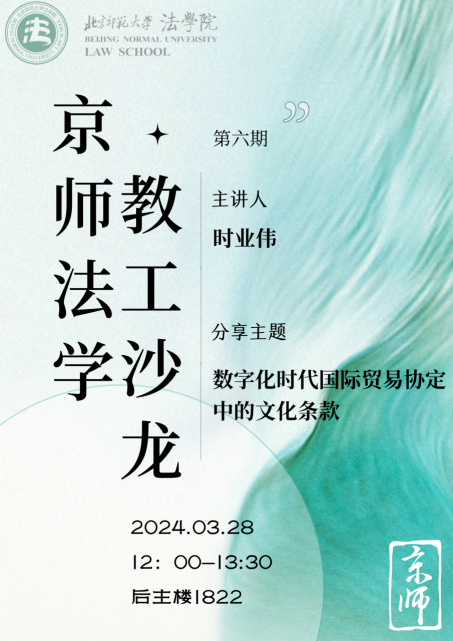 “京师法学教工沙龙”第六期《数字化时代国际贸易协定中的文化条款》成功举办