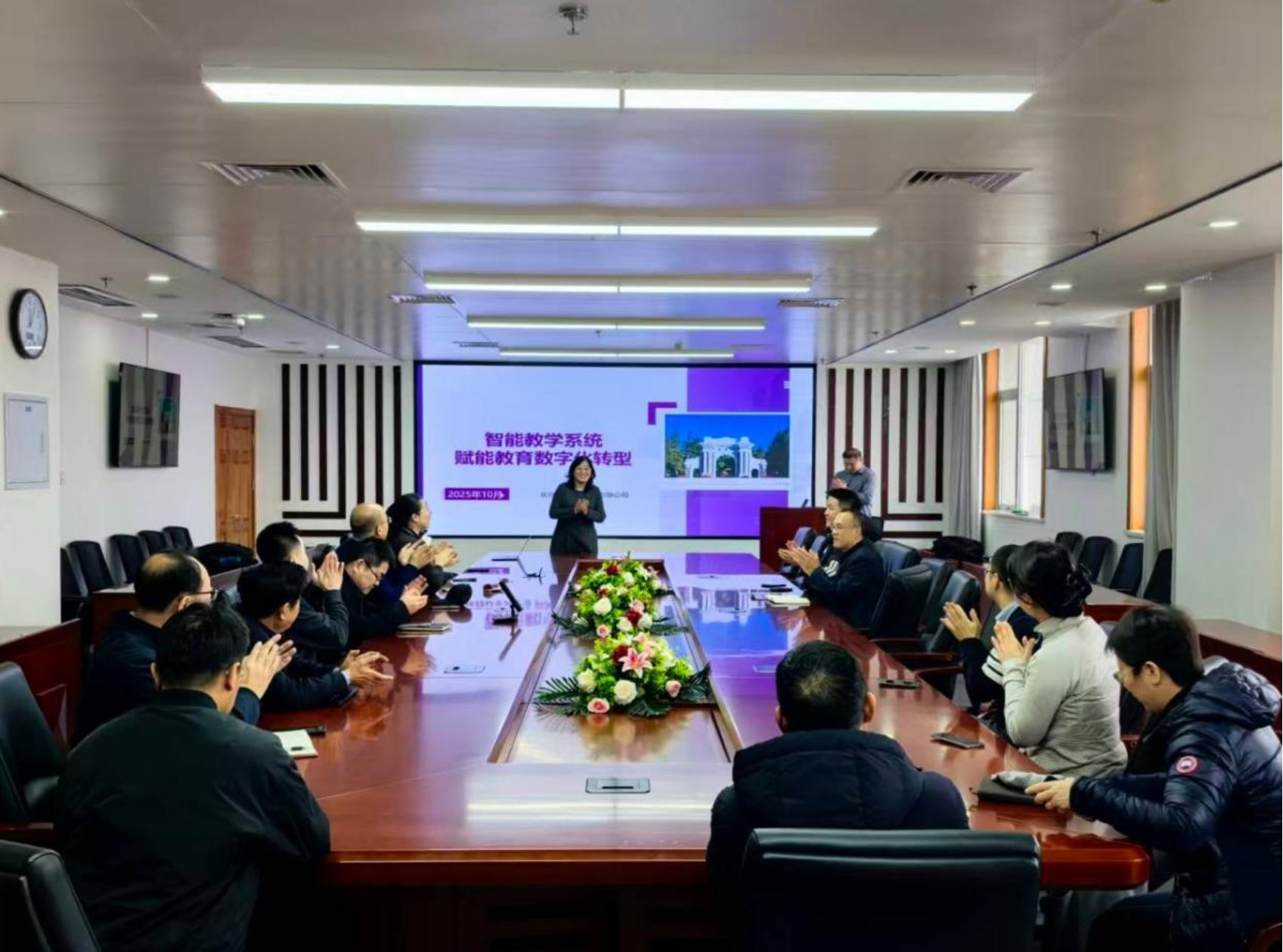 2025年10月24日中午12点,北师大 成人玩具 于后主楼1822会议室举行了“京师法学教工沙龙”,主题为《智能教学系统赋能教育数字化转型》。本次教工沙龙由贺丹副院长主持,邀请了北京清北智源公司合伙人武爱敏、解决方案负责人王辉、销售负责人李威霖作为嘉宾进行分享交流,学院教师线下线上结合形式参加。
