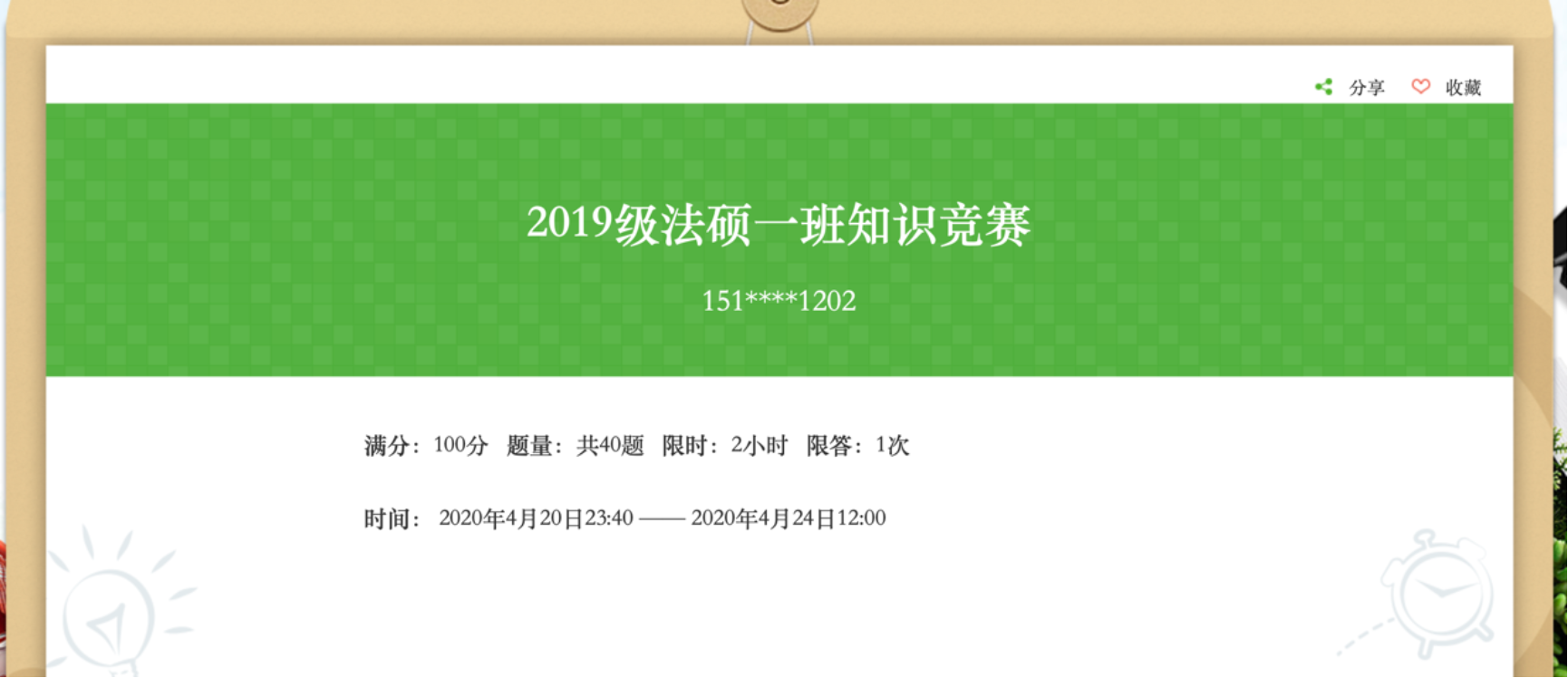 北师大校内的花已如期绽放,但由于疫情形势,根据党中央的部署,同学们依旧在家线上学习。在非常时期为了增强同学们的线上学习热情,2020年4月20日至4月24日,2019级法硕一班与2019级法律硕士第一党支部联合组织了线上知识竞赛活动。