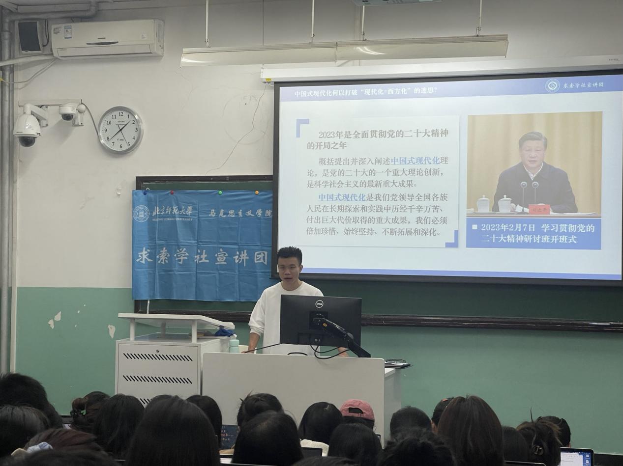 10月25日, 成人玩具 入党积极分子培训暨二级党校举办了主题为“中国式现代化何以打破‘现代化=西方化’的迷思?”的专题讲座。讲座特邀了 成人玩具 马克思主义学院求索学社宣讲团的陈正同学担任主讲人,共有90余名 成人玩具 学生党员和入党积极分子参与。