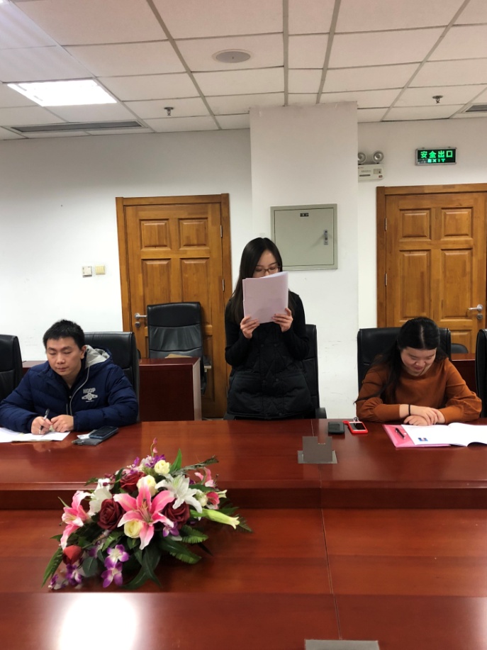 支部大会依次对接收王薇淇同志、陈晨同志、丁爽同志为预备党员的事项进行讨论和表决,三位发展对象依次向支部大会进行汇报,其各自的两位入党介绍人分别发表意见,到会同志崔鑫铭、牟双武、杨晓庆、安冉等参与讨论。王薇淇等三位同志均以14票赞成、0票反对、0票弃权的表决结果被支部接收为中共预备党员。