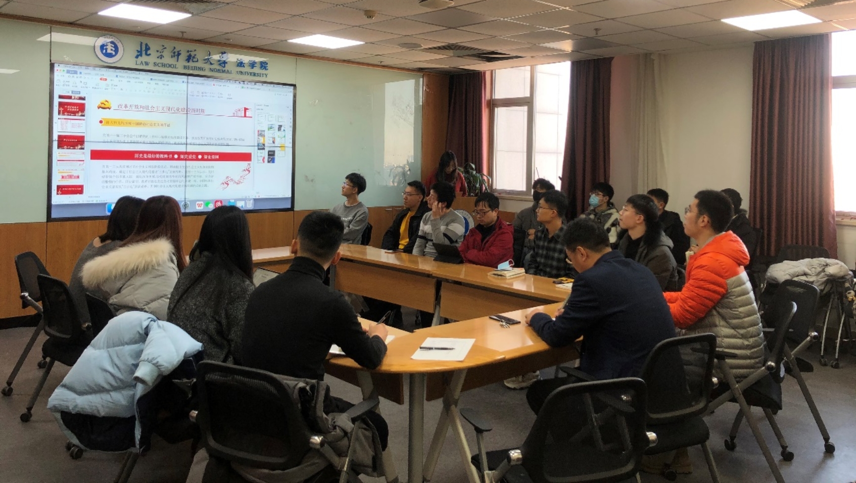 通过党支书的讲解后,同志们对于改革开放史有了更深刻的了解和认识。在谈及初心和使命时,指导老师阴建峰老师也就此主题发表了自己的感想。阴建峰老师说道:“作为‘四史’的重要组成部分,改革开放史具有不可替代的重要意义,而且,对于中华民族以及中华儿女而言,改革开放及其成果充分体现了中国共产党为人民谋幸福,为民族谋复兴的初心和使命。具体到现实中来,我作为一名刑事法律科学研究院的老师,从学院建立到现在,我看到身边的各个老师都在用自己的方式去诠释学院建立和发展的初心,用自己的行动去担起我们作为一名教师、一个刑法人的使命。所以,同学们,无论现在的你们是一名正式党员,还是预备党员,哪怕是入党积极分子,也应该努力在思想和行动上努力向党组织靠拢,从小事做起,从为身边的人民服务做起,也希望参与本次活动的每一位同学,在今后的发展中,既要坚定地向前走,又要在前行的过程中牢记自己的初心,牢记中国共产党的初心,并在实践中践行中华民族伟大复兴的使命担当。”