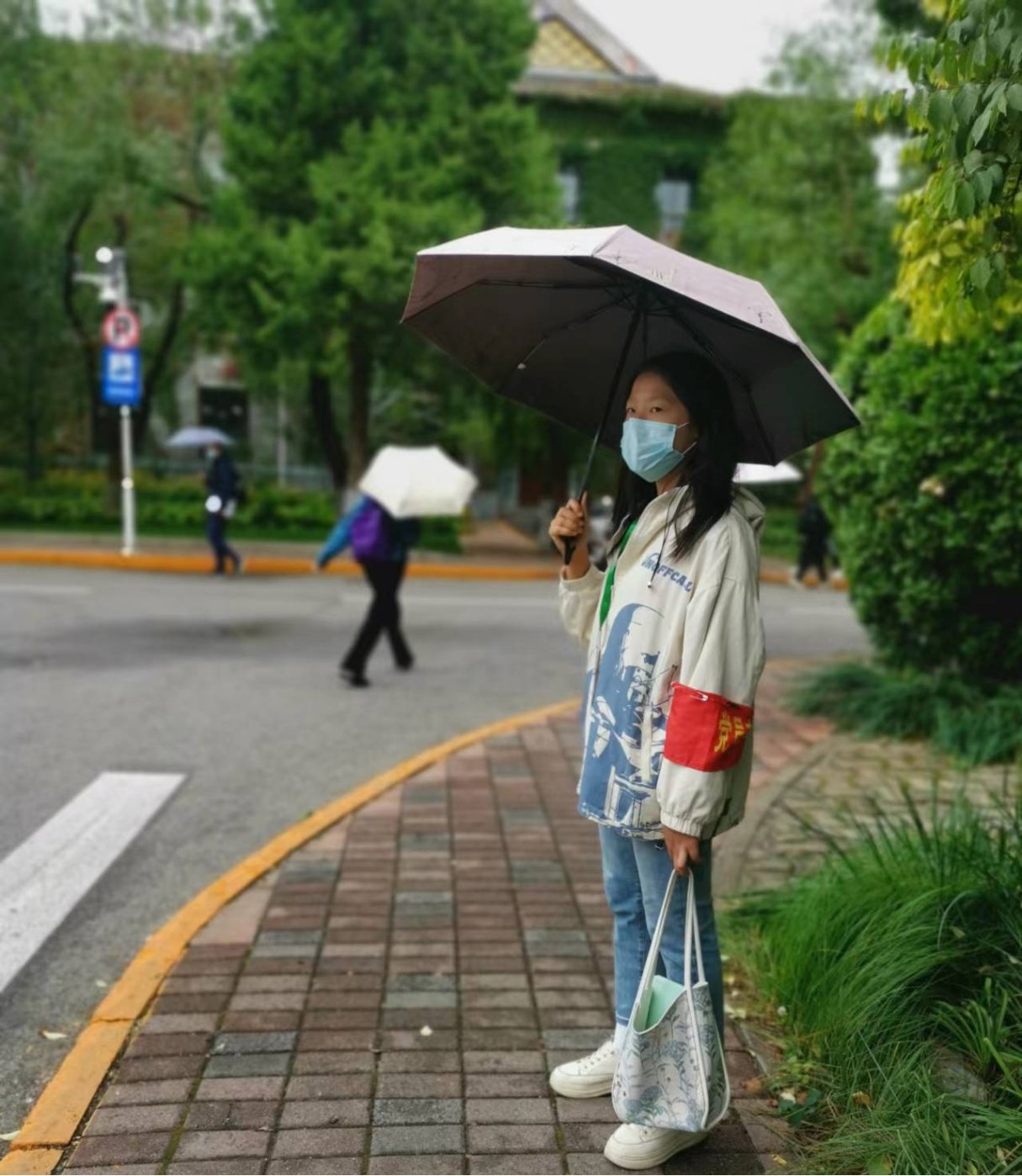 本次志愿服务刚好赶上北京降温,虽然只站了短短两个小时,全身已经被冻得冰凉了。在这个寒冷的秋日,穿梭在教九小花园,重复一句句“同学,请戴好口罩”,我看到了许许多多的温暖:有的同学会将口罩从口袋中迅速掏出并戴好,大多数同学都能做到佩戴口罩进出教学楼,有些忘记带口罩的同学会主动过来要一个,临走时不忘留下一句真诚的“谢谢”。在人流稀少的时段,我也看到了许许多多的后勤工作者,他们或在花坛间弯腰劳作,或搭着长梯于高空作业,但依旧戴着口罩,没有丝毫松懈。口罩虽小,隔离疫情,不隔离爱。平凡生活的稳定运行,需要大家的共同努力。