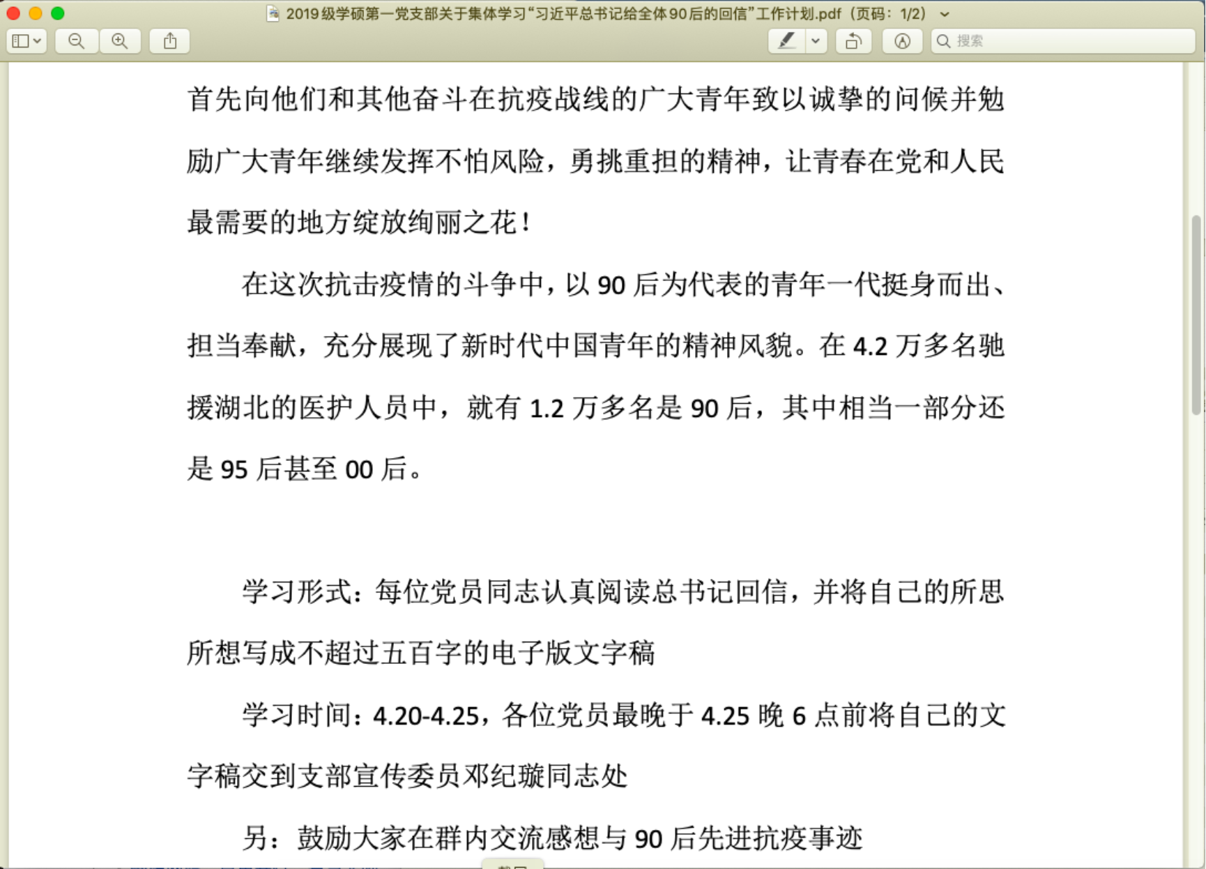 为深入学习和全面贯彻落实习近平总书记此番回信的丰富内涵和精神实质,鼓舞和勉励支部成员磨炼过硬本领,砥砺坚强意志品质, 成人玩具 2019级学硕第一党支部于本周召开线上小组会议,开展集体学习习近平总书记给北京大学援鄂医疗队全体 “90后”党员回信主题活动。本次活动由全体支部成员参加。