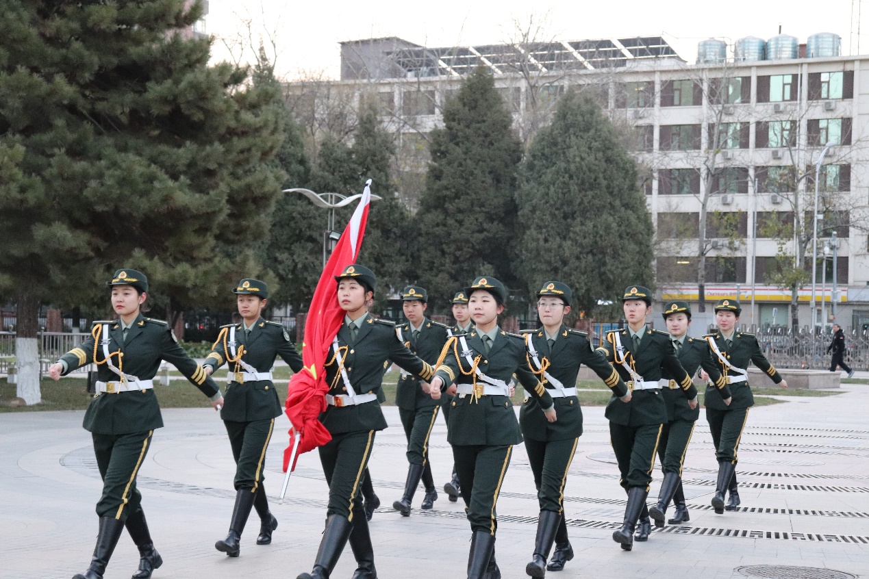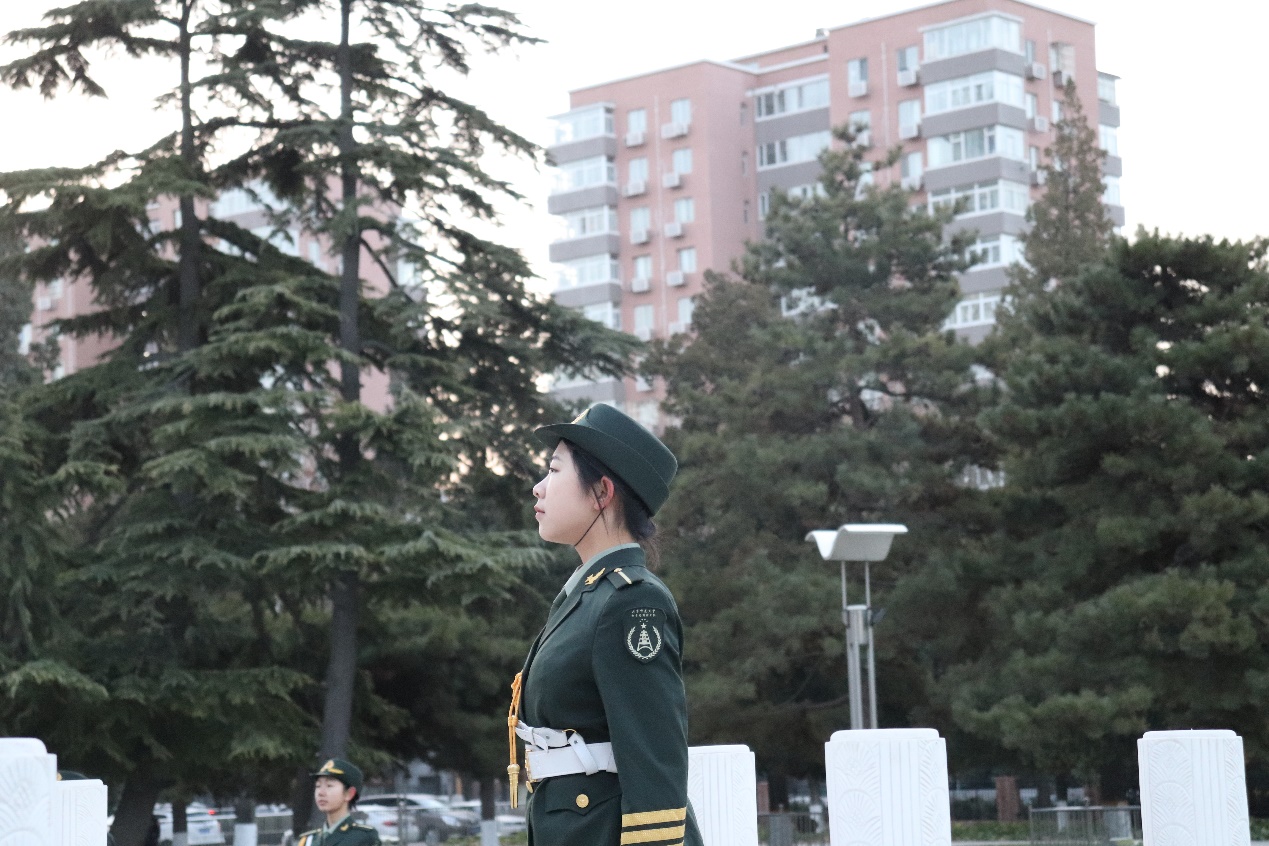 在灿烂的朝霞里,她们从容自信,坚挺身姿。在冬日的寒风中,她们英姿飒爽,昂首阔步;在国歌奏响时,她们动作标准,眼神坚毅。