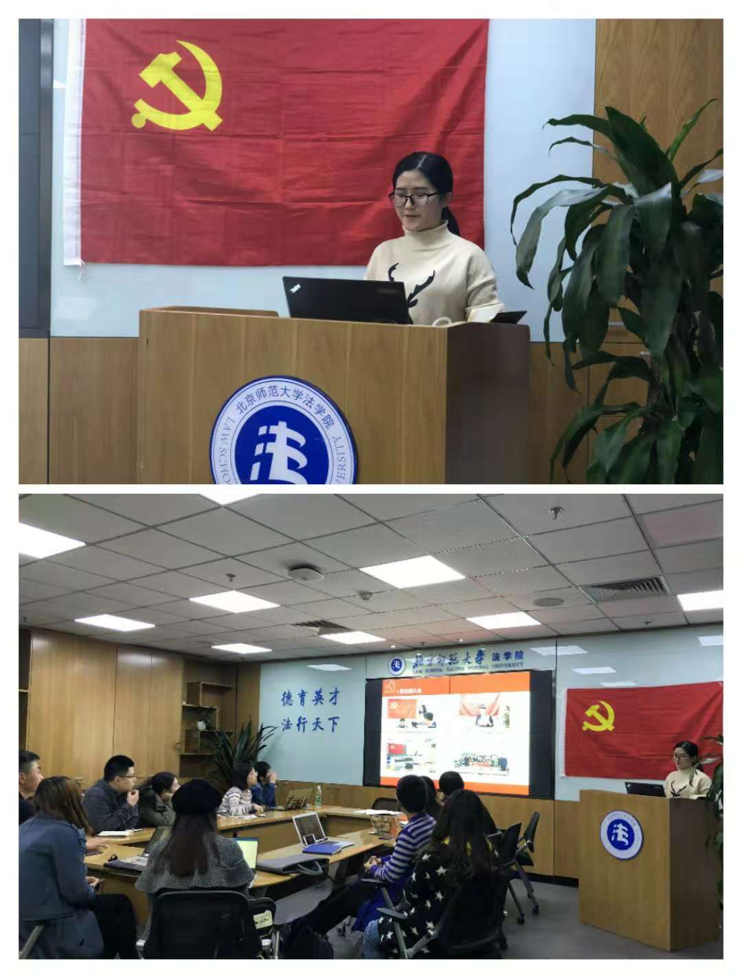 接着,2016级法硕第一党支部书记赵琪同学和上一届2016级法硕第二党支部书记李明桐同学也进行了工作心得经验分享,主要介绍了党建基金的申请、固定党日活动的活动形式和党小组活动的开展方式等,还分享了此前支部开展社区普法、与学院教师党支部共建等党建活动的经验。