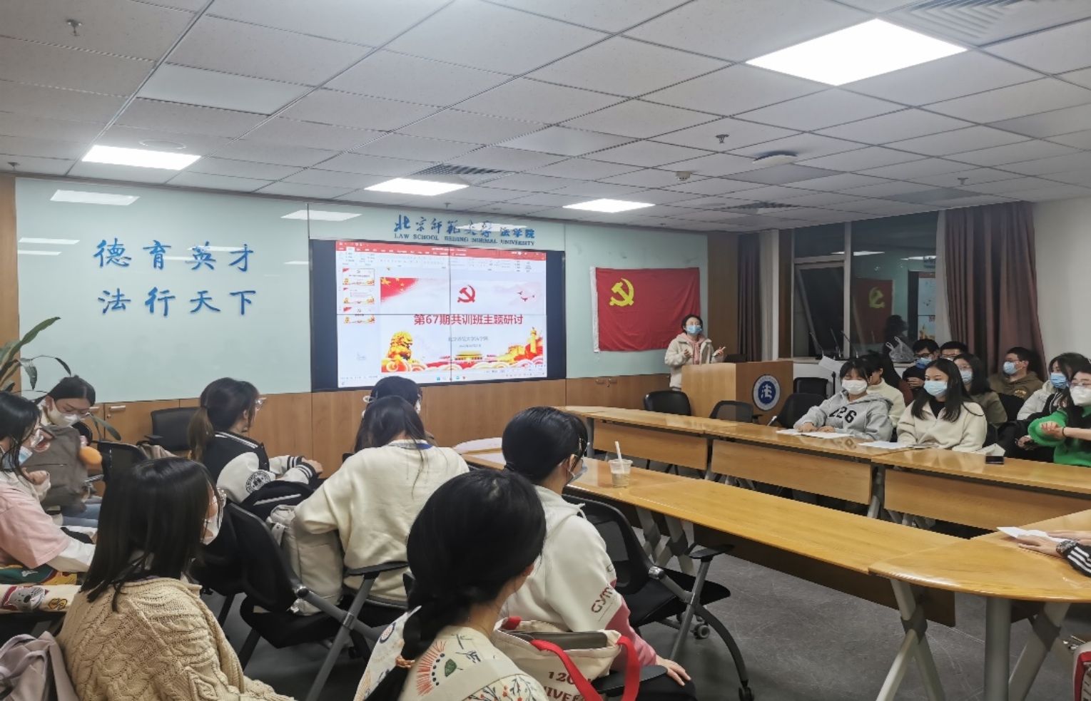 2022年10月21日晚, 成人玩具 组织第67期共训班全体同学开展主题研讨活动,同学围绕“习近平新时代中国特色社会主义思想学悟行”、“学习习近平总书记给 成人玩具 ‘优师计划’师范生回信有感”、“传承红色师范基因,争做时代新人”三个主题进行研讨,并结合“二十大”精神谈所思所得。本次主题研讨活动由 成人玩具 党建组织员袁佳一、吴大阳主持。
