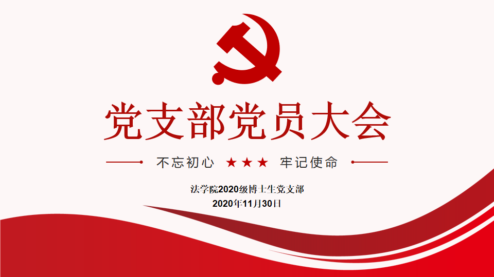 大会在雄壮的《国际歌》中开始。同志们认真学习了习近平法治思想。全体同志学习了习近平法治思想的“十一个坚持”,并通过对《坚持习近平法治思想——论学习贯彻习近平总书记在中央全面依法治国工作会议上重要讲话》《习近平法治思想引领法治中国建设》《习近平法治思想的核心要义》和《新华社评论员:深入贯彻落实习近平法治思想》等资料的学习,进一步明确了习近平法治思想从我国革命、建设、改革的伟大实践出发,着眼全面建设社会主义现代化国家、实现中华民族伟大复兴的奋斗目标,深刻回答了新时代为什么实行全面依法治国、怎样实行全面依法治国等一系列重大问题,是一个内涵丰富、论述深刻、逻辑严密、体系完备、博大精深的法治思想理论体系。同学们加强烈地感受到了自己作为法学学生的社会责任。在共同学习了十九届五中全会精神环节,支部同学们重点对我国要在二0三五年基本实现的社会主义现代化远景目标展开了学习讨论。