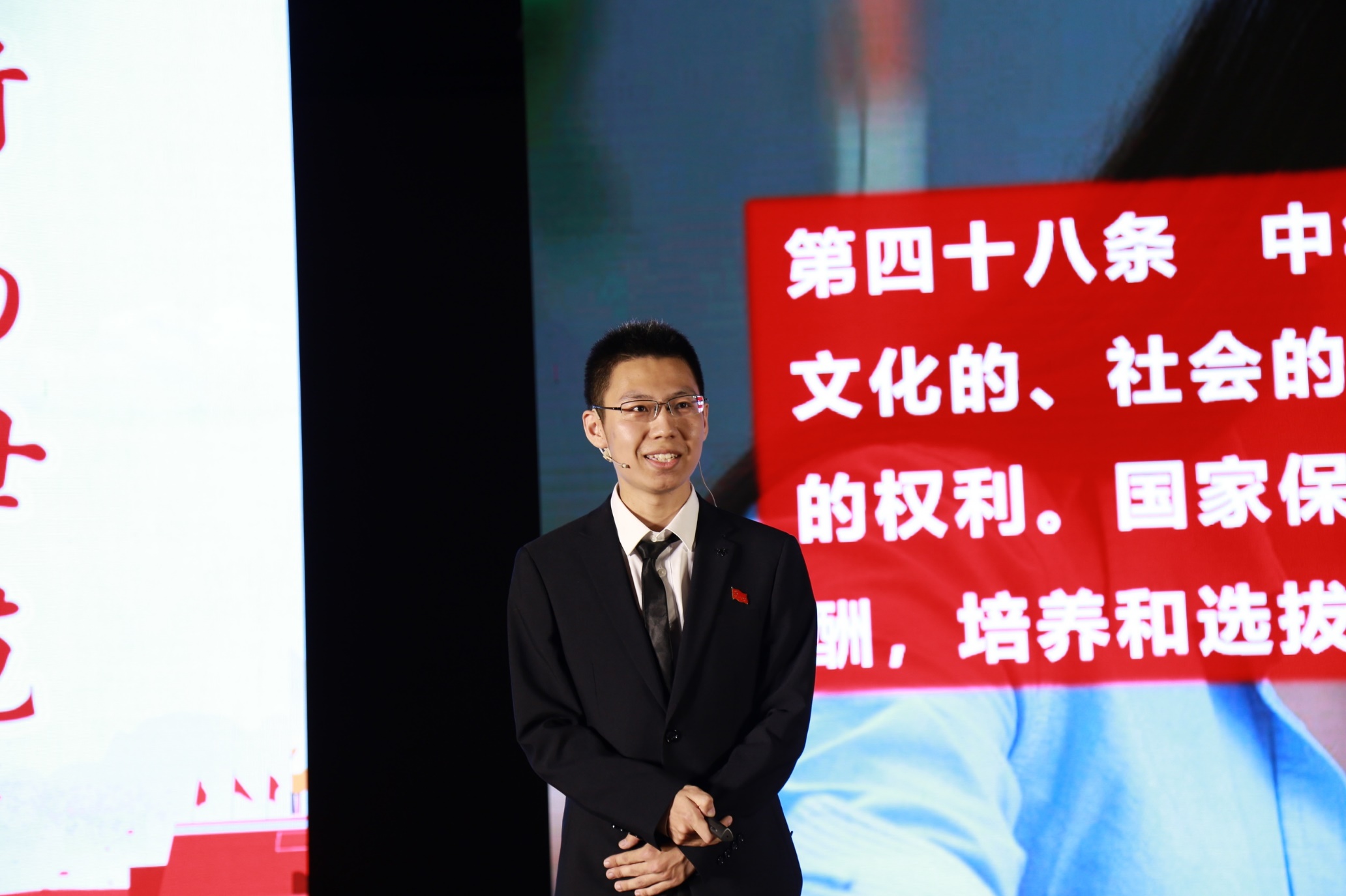 在决赛中,成人玩具 选手李勇同学以“宪法与人的一生”为题,为观众呈现一堂极其精彩的党课。首先,他以自身两年前“宪法日”外场中的经历作为引入,启发观众对于宪法重要性的思考,接下来他以每个人的一生为线索,循序渐进地阐释了宪法的相关条文与我们人生中求学、就业、婚姻、退休等重大事件的关联,告诉同学们:宪法看起来离我们很远,实际却与我们的一生都紧密相连。最后他引用习近平总书记关于宪法重要性的阐释,鼓舞同学们了解宪法、尊重宪法、拥护宪法、信仰宪法,从你我做起,实现依宪治国的宏伟目标。