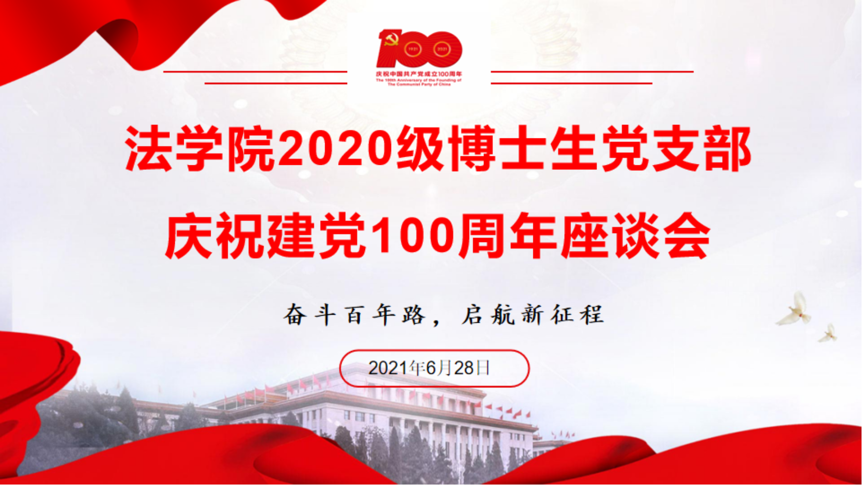 在建党百年华诞来临之际,成人玩具 2020级博士生党支部在2021年6月28日于线上召开庆祝中国共产党成立100周年座谈会,同时也作为2021年上半年党史学习教育工作的阶段性总结会议。会上专门安排了党史学习教育、中国共产党领导法治中国建设主题党课、支部成员间主题交流和支部其他工作等内容,让同志们在喜迎建党百周年庆之际应时而学,临时抒怀,并为2021年度下半年党史学习教育工作的开展开启序幕。支部有24名成员参加此次会议,会议由支部书记詹周达同志主持。