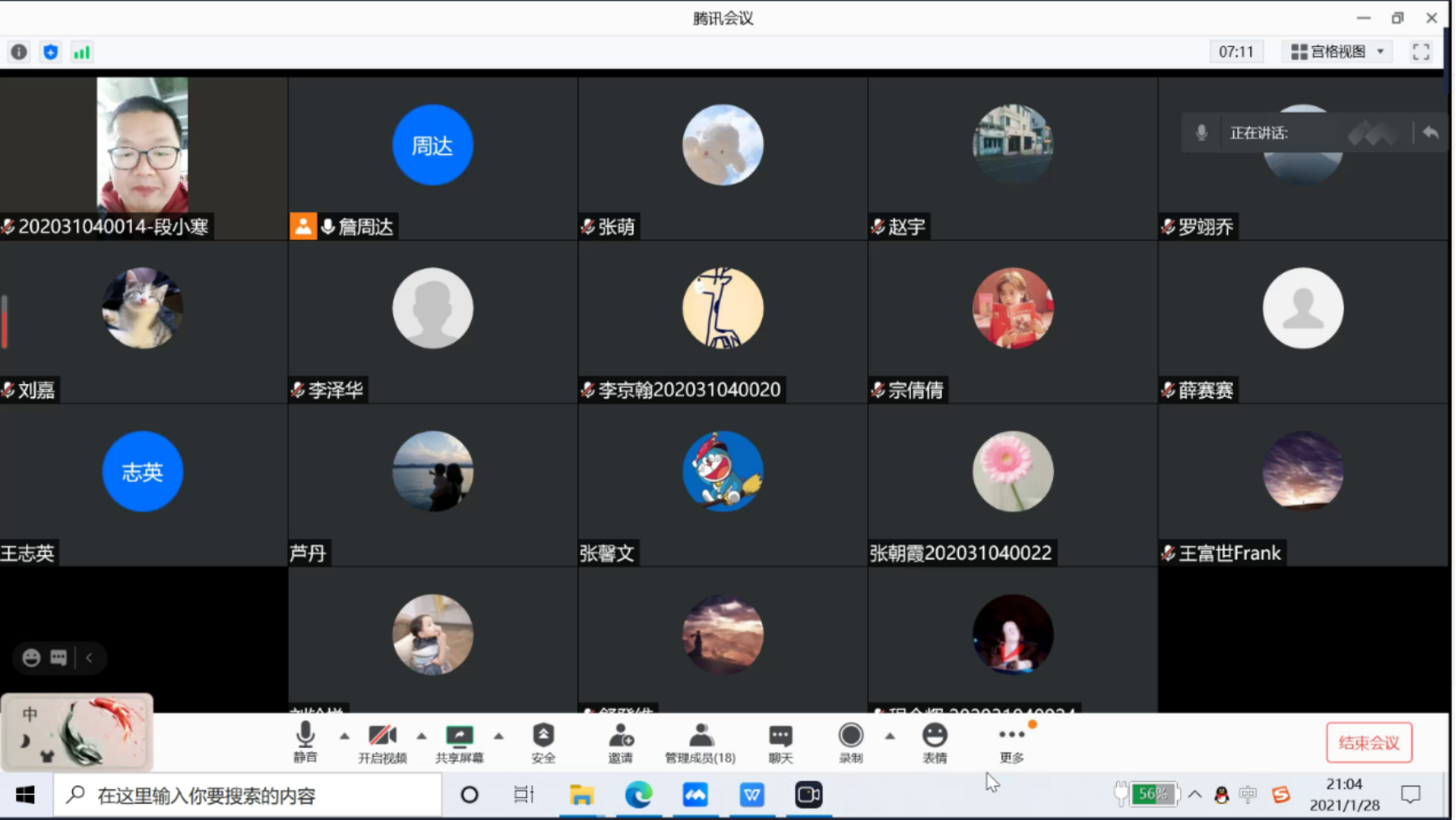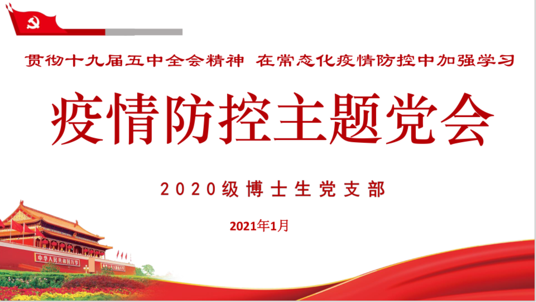 为贯彻落实十九届五中全会精神,在常态化疫情防控中加强学习,让同学们在寒假期间保持学习热情、坚持日常防疫,按照学校和学院的党建工作部署, 成人玩具 2020级博士生党支部于2021年1月29日21:00通过腾讯会议以线上方式召开了疫情防控主题党会。本支部的正式党员和积极分子20名同志准时参会,支部书记詹周达同学主持会议。