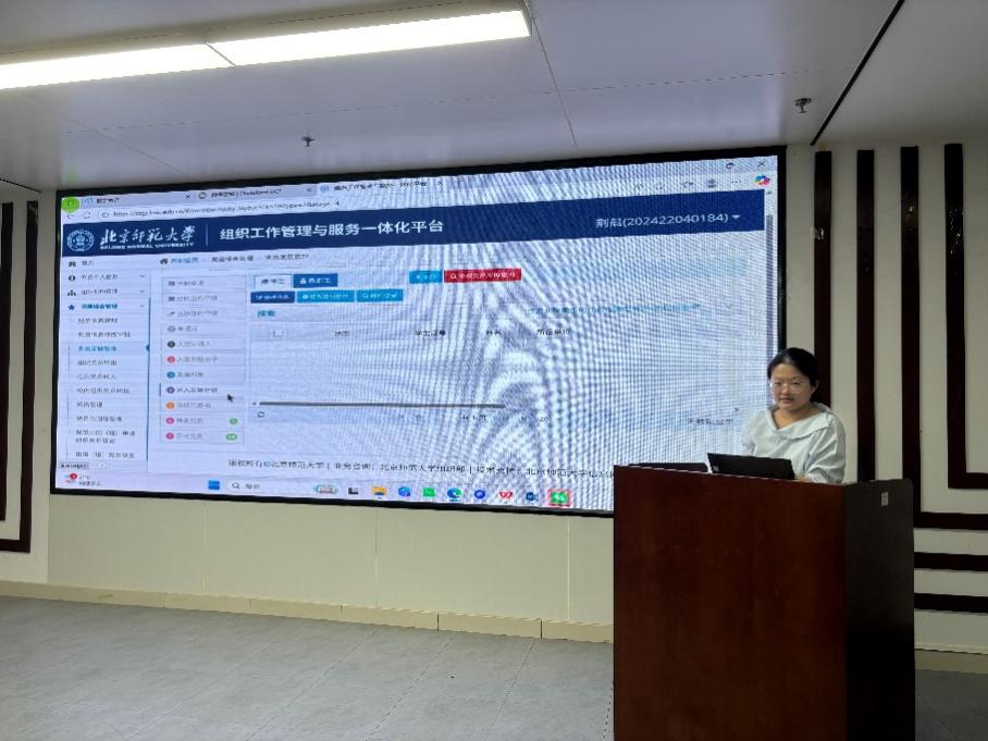 其次,学生党建组织员王思语生围绕党员发展阶段管理,详细讲解了在组工系统上从申请入党到预备党员转正全流程的党员发展阶段调整操作,并进行演示。