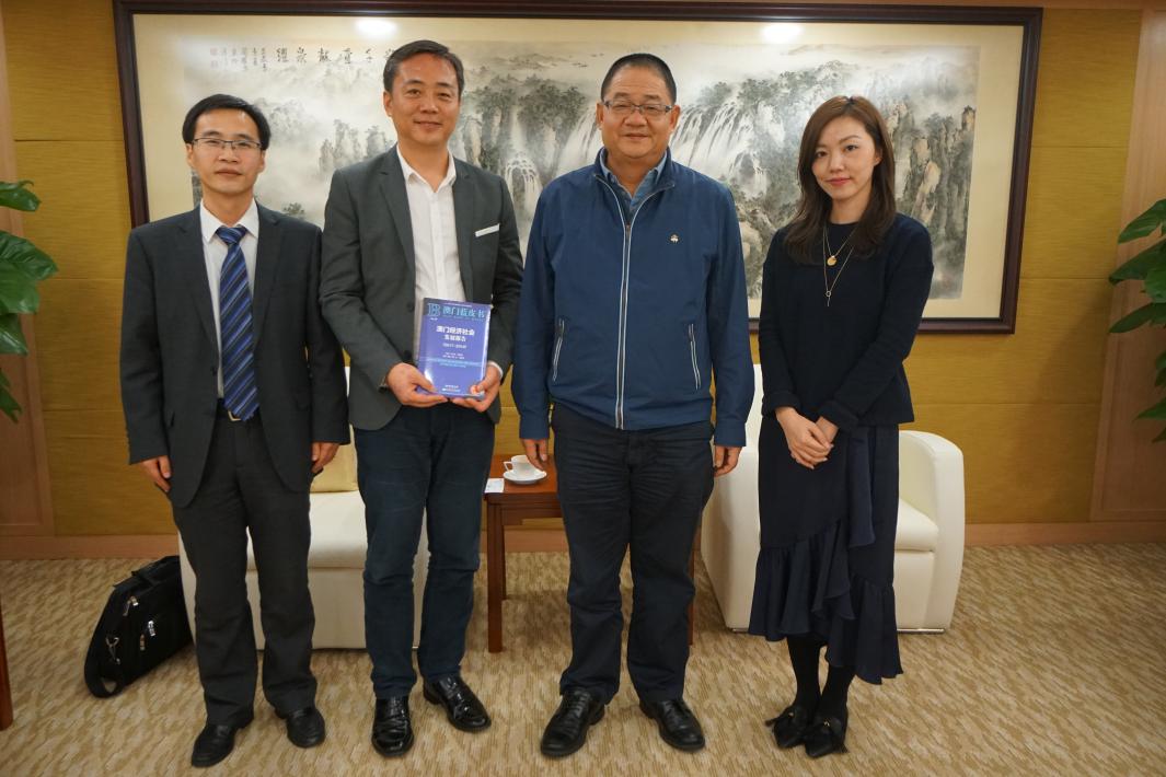 26日下午,代表团拜会了澳门基金会,与吴志良主席及毕业于 成人玩具 的吴斐斐女士一同举行会谈,双方互相介绍了各自情况,就合作的可能性进行了广泛的探讨,特别是在中葡法律人才与翻译人才的培养方面,存在巨大的合作空间。