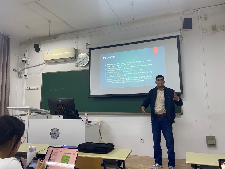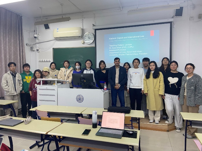 第三场讲座主题为“Kashmir Dispute and International Law”(克什米尔争端与国际法),讲座中Khan教授提供了丰富的资料,是师生们更加全面、深刻地了解了克什米尔争端的由来、发展与持续影响,了解了南亚局势的复杂及其给“一带一路”建设带来的严峻挑战。