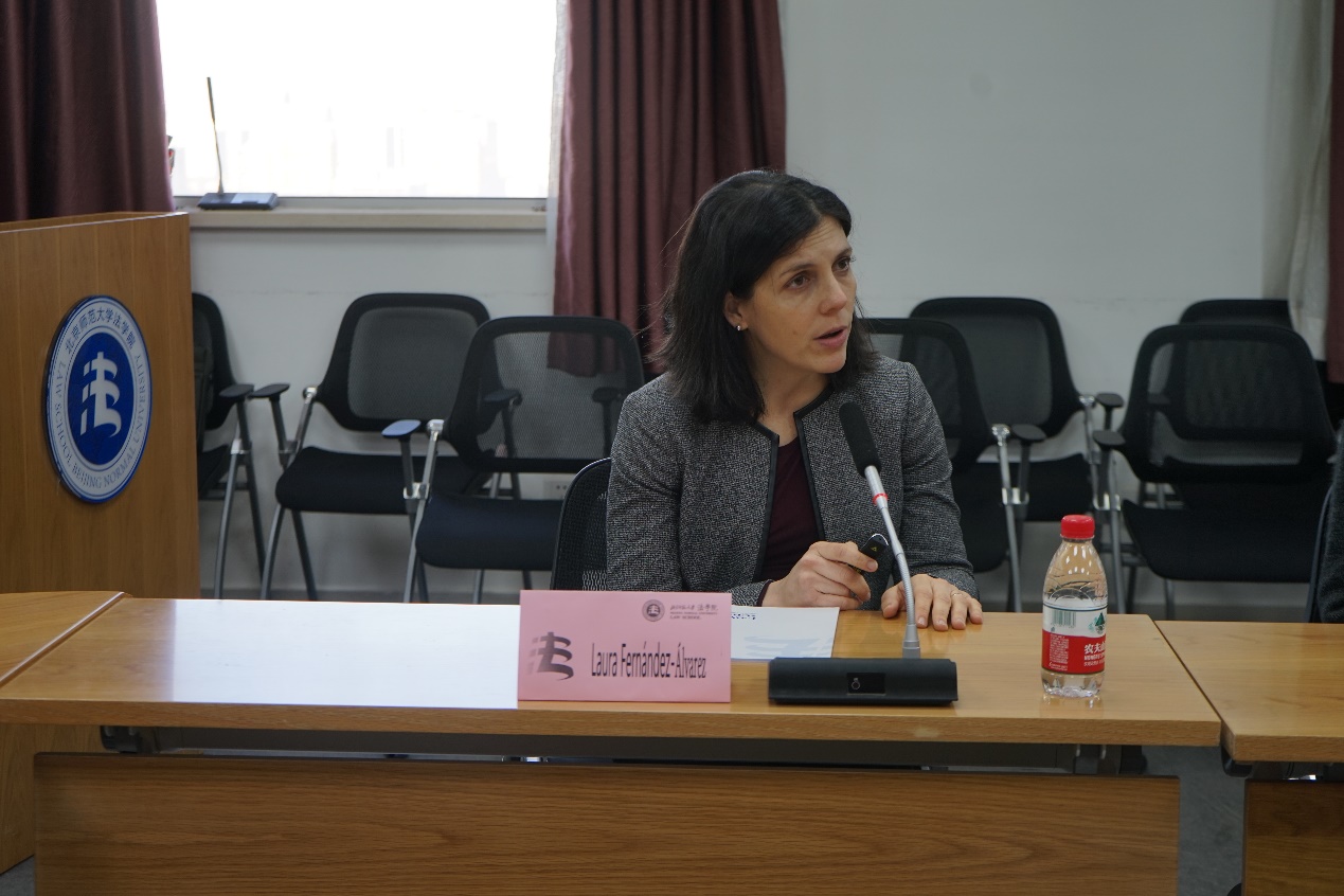 Laura Fernandez-Alvarez院长首先向同学们介绍了美国俄亥俄州立大学莫里茨 成人玩具 的大致情况、地理位置等信息,着重介绍了Masters of laws(LL.M)项目,就课程与学分设置、师资力量、优势专业方向等情况进行了详细说明。