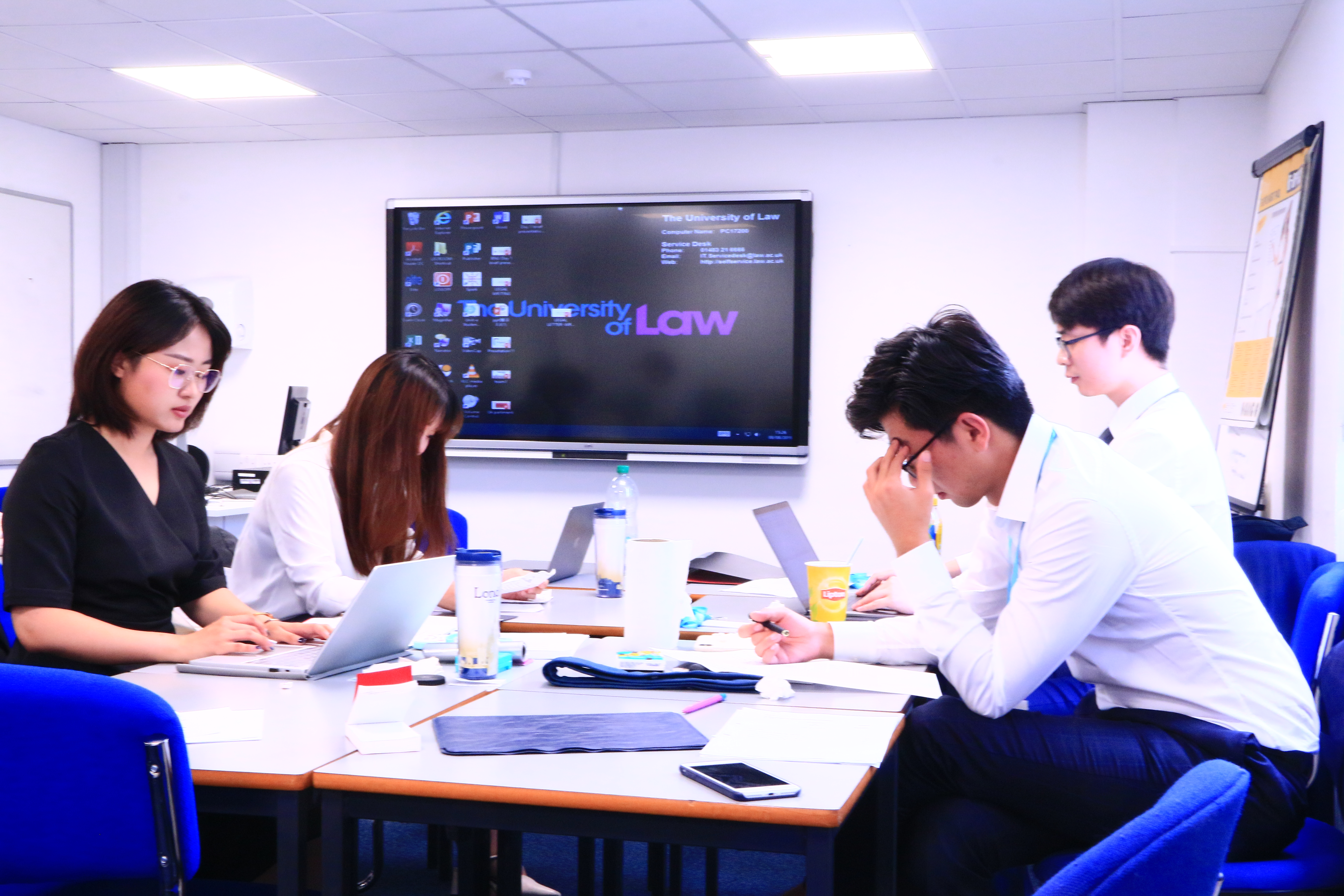 在整个学习过程中,大家都十分认真,课上与老师积极讨论、课下认真完成作业。尤其是最后在皇家法院举行的模拟法庭比赛中,为了能够展现出最好的状态,同学们登录westlaw查找判例,在公寓大厅搜集资料、讨论学习到深夜,努力为最终的比赛做准备,最终也赢得了英国法学大学老师们的赞赏。