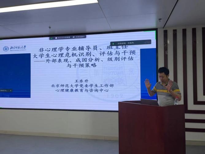 为提升学院教师的心理健康知识素养,有力推动学院心理健康教育工作的开展,2023年6月9日下午, 成人玩具 举办“大学生心理危机识别与干预”专题讲座。本次讲座邀请到了 成人玩具 学生心理咨询与服务中心专职心理教师王东升老师主讲。学院党委副书记郭雅婷、学院专职辅导员及班主任老师、应急管理学院的班主任老师通过线上线下结合的方式参与了本次讲座。活动由党委副书记郭雅婷老师主持。