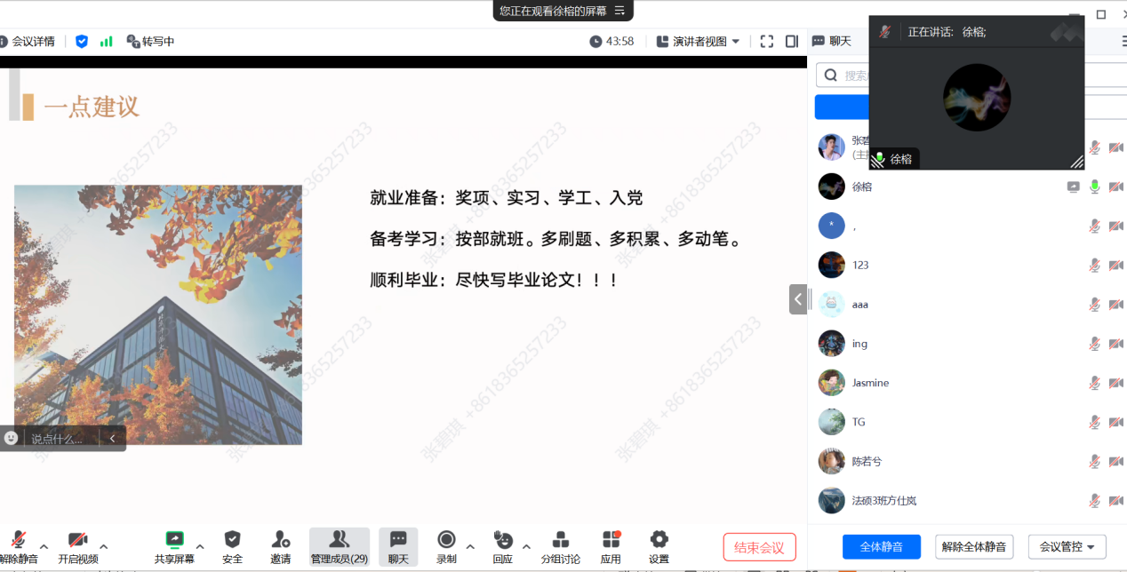 在互动提问环节,师兄还回应了体制内就业方向的准备和需要等问题,解开了同学的困惑。