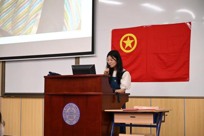 京师法“典”青春宣讲团的宣讲员李哲为大家分享的是青年运动,宣讲主题是《峥嵘岁月,青春许国——从五四到20大,党领导青年运动的光辉历程》。“在成事中炼才,在锤炼中成器,让青春在新时代新征程法治中国建设的伟大实践中绽放绚丽之花。”这让身为法学生的我们心潮澎湃,精神振奋。