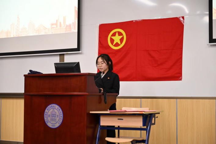 活动开始时,主持人暨团委组织部干事李蔚蓝同学带领大家奏唱团歌、重温入党誓词“我志愿加入中国共产主义青年团,坚决拥护中国共产党的领导......为共产主义事业而奋斗!”