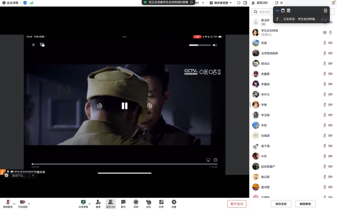 为增强同学们的宪法意识,弘扬宪法精神,加强宪法实施,全面推进依法治国、依宪治国, 成人玩具 2022级学硕2班全员参加了 成人玩具 学生会组织的线上“宪影之行,法律之思”观影活动,集体观看电影——《第一大案》。观影活动于4日晚7点开始,学硕二班团支部全体成员准时进入腾讯会议室线上观影。本次观看的电影《第一大案》是以新中国反腐第一大案——刘青山、张子善案侦办始末为蓝本,讲述1951年陈怀邦在反特行动中,挖出了地委书记刘青山的惊天秘密,昔日战斗英雄成为巨贪,陈怀邦并没有因旧时情谊而放弃内心所追求的正义,而是选择了忠诚于党纪国法,忠诚于人民,终将其送上了人民审判台故事的影片。