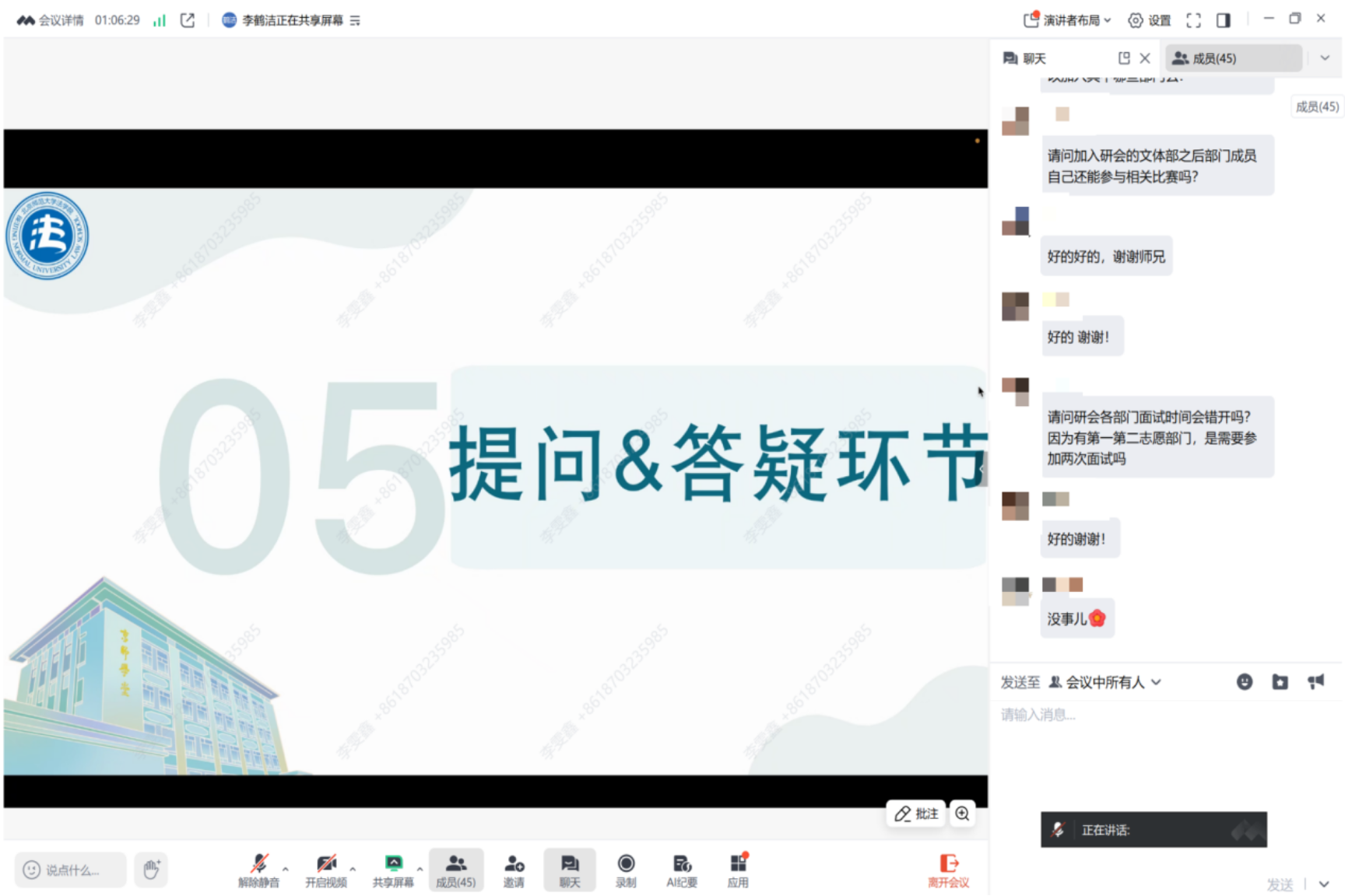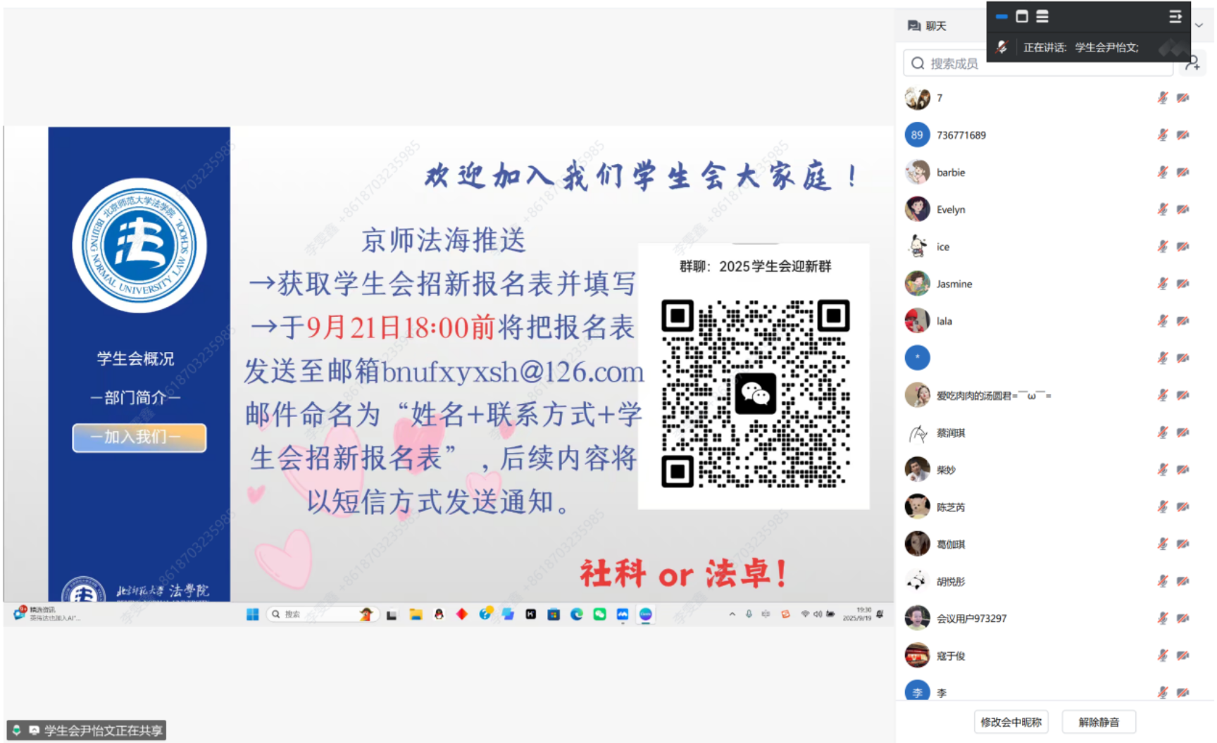 成人玩具 团学研组织招新宣讲会于9月19日晚在线上圆满举行。 成人玩具 团委副书记、各部门委员,研究生会主席团成员,学生会主席团成员及 成人玩具 本硕博新生等共计七十余人参加本次宣讲。宣讲会由团委组织部委员李鹤洁主持。宣讲会上,各部门负责人依次亮相,为同学们详细介绍工作内容与招新计划,展现出团学研组织的活力与包容。