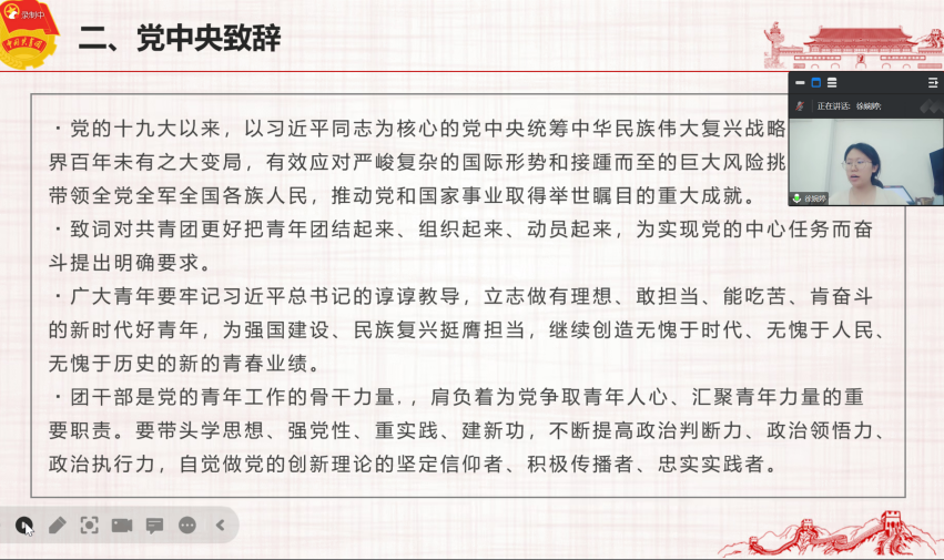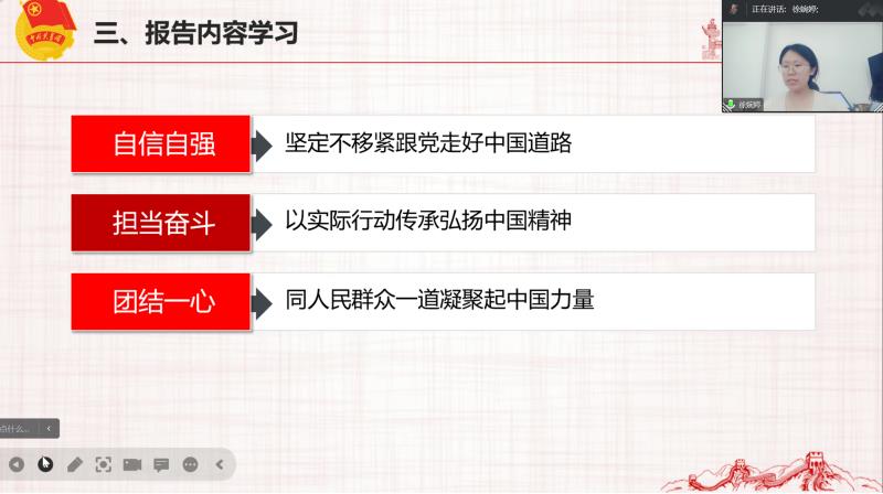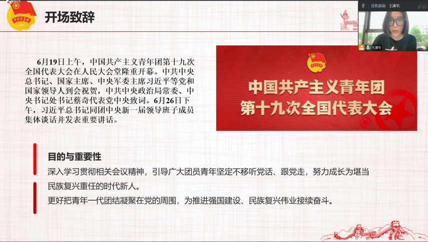 会议伊始, 成人玩具 团委副书记王潇苓阐述了开展本次专题学习会的目的和重要性,鼓励全体成员认真学习相关会议内容。