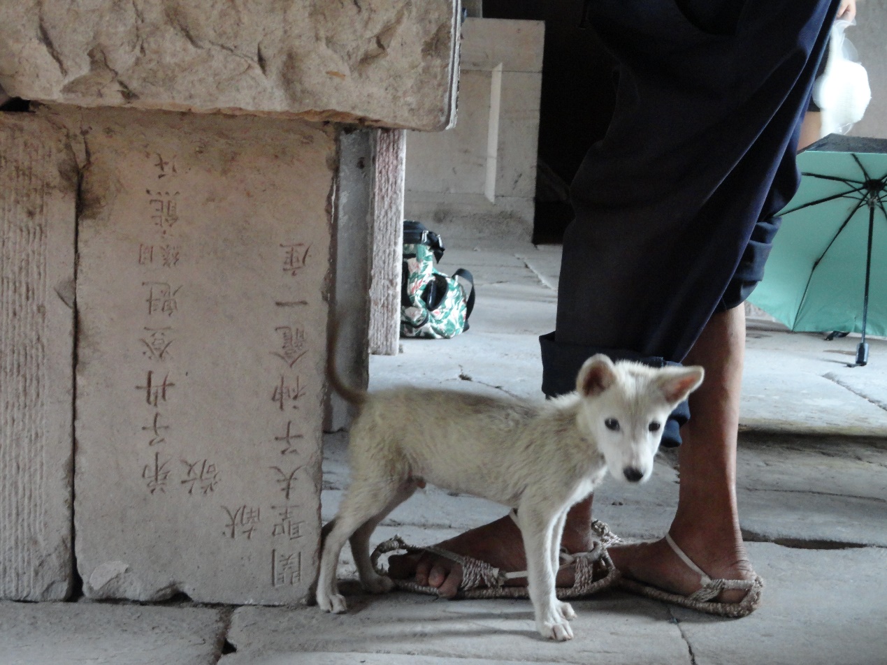 2018年8月15日:调研队成员在吴老师和代老师的推荐下来到了丰都县悟惑寺。悟惑寺曾为川东佛教活动中心之一,为一三进院落,建筑物高大素雅,如今只剩一年过七旬的老人在此守护。据老师介绍,寺中原有数尊高大的玉佛,而如今前往,却只见中殿的三座劣质的泥塑,遍布尘灰,少有人祭拜。神台正面刻有一碑,名为《灯田园叙》,记录了悟惑寺的些许历史,队员们顶着大汗,耗时许久对其进行了抄录。临走时突然天公作美下起了大雨,悟惑寺伫立在这雨中别具风味。和老人聊天的过程中我们了解到,他已经在此守着这座寺庙二十余年了,孑然一身,使人不知作何感叹。