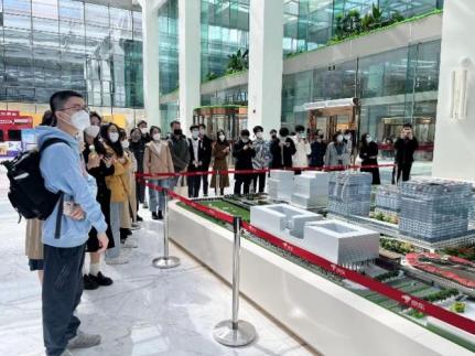 师生代表跟随讲解员陆续参观了京东集团各主要业务部门的展区。具体包括目前京东集团的线下人工服务与智能快递柜相结合的物流自提点、京东之家、京东物流、京东保险、京东总部建设模型和目前尚在建设当中的京东总部第三期等板块。京东大厦内部拥有京东完整的自有营业部,可以完成全流程服务,体现了京东一直以来坚持完成“最后一公里配送”的服务理念。
