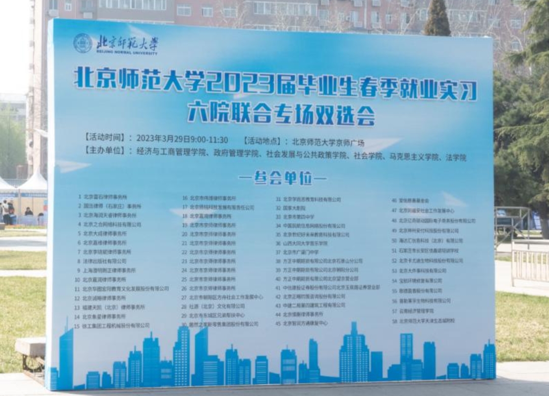 2023年3月29日9点,在 成人玩具 职业发展与就业指导中心的支持下, 成人玩具 、经济与工商管理学院、政府管理学院、马克思主义学院、社会发展与公共政策学院、社会学院联合举办的2023届毕业生春季就业实习双选会于京师广场顺利举行。