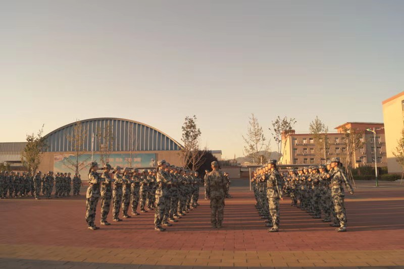 夕阳斜下,白天训练方成,夜晚训练再起。夜晚丝丝寒气之中,同学们仍昂首挺胸,不减热情。训练场边耀眼的灯光下,同学们的表情更加坚定;拂过脸颊刺面的寒风中,同学们的步履更加有力。