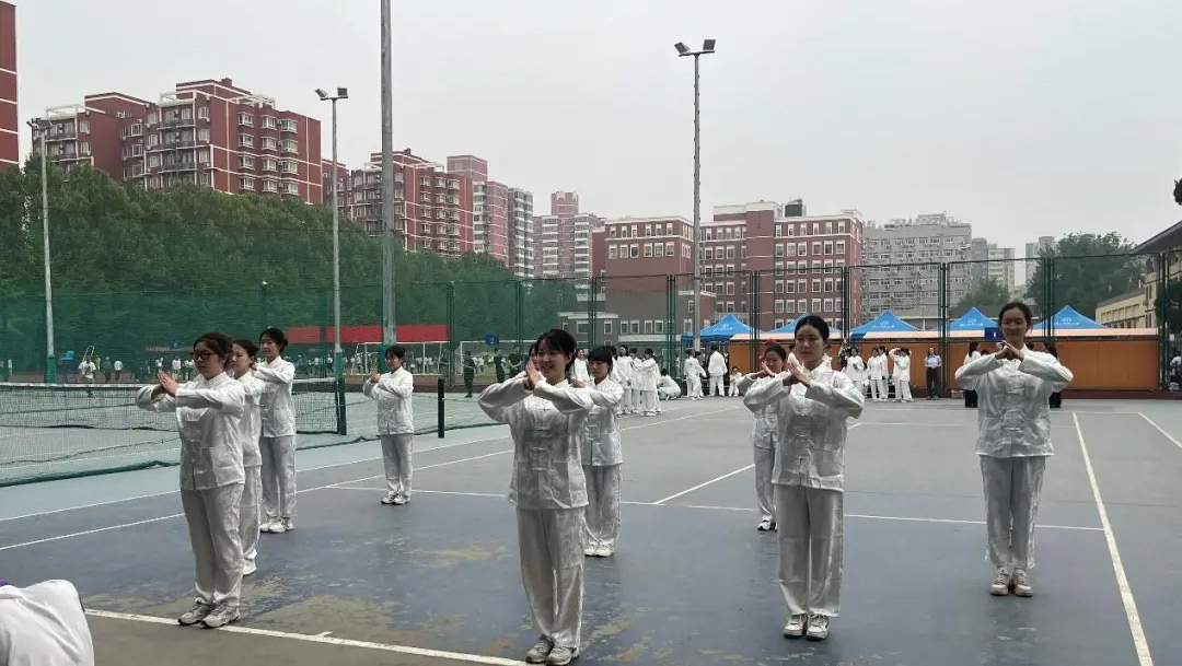在大河起舞比赛项目中,同学们抓紧上场前的时间练习,增进默契。赛场上克服雨天地面湿滑的不利条件,以优异的成绩圆满完成比赛,收获快乐与掌声!