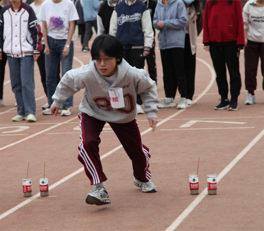 屏息凝神,眼神专注,前俯身,转眼间随着几个流畅迅速的大跨步同学们就已飞跃出去。腾空,前伸,落地,所有的动作皆一气呵成。