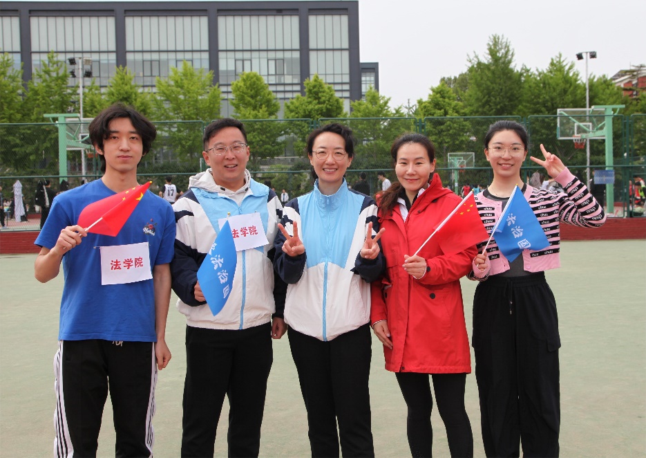 老师和同学们一起踏上赛场、一马当先,体现了师生合作团结一致向前冲的图景。