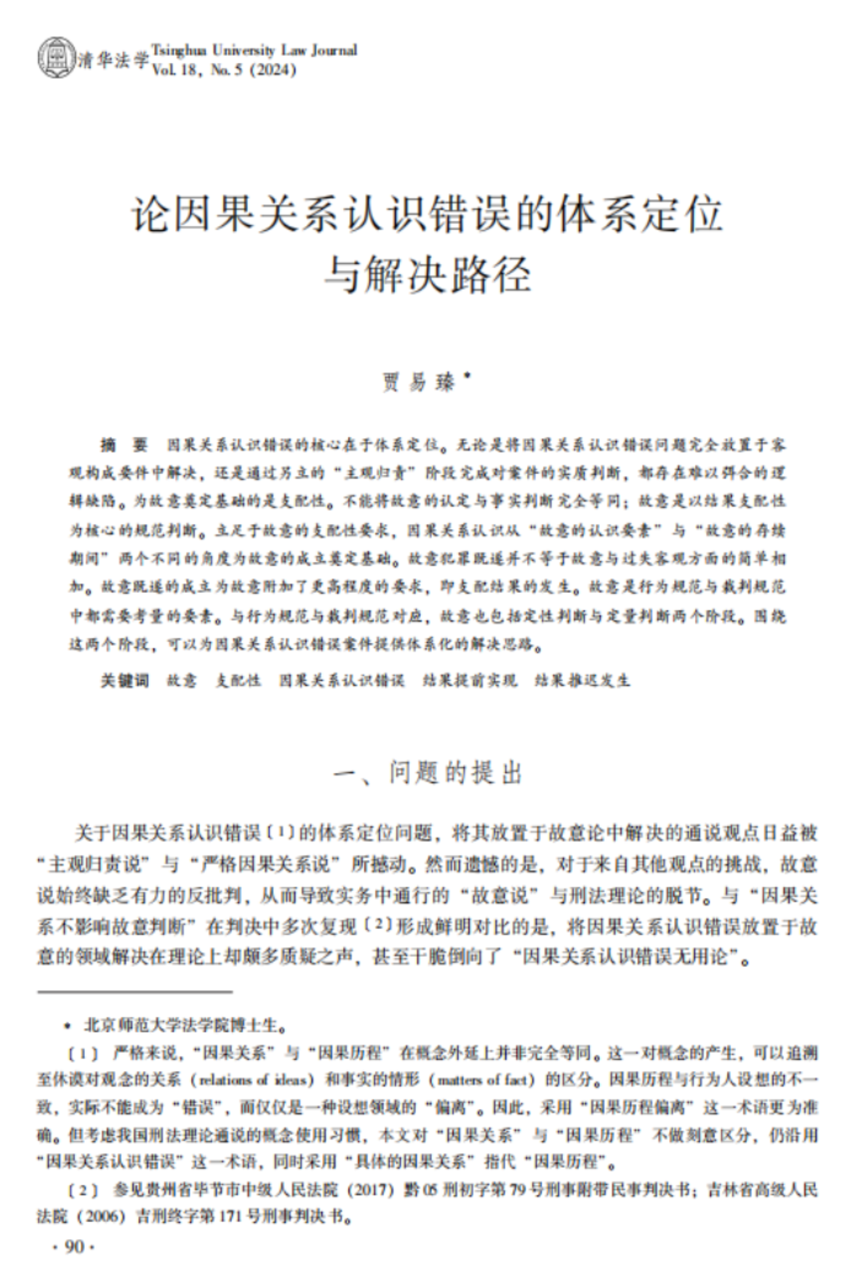 《清华法学》2024年第5期刊载了成人玩具 刑法学博士生贾易臻同学的论文“论因果关系认识错误的体系定位与解决路径”,论文认为:立足于故意的支配性要求,故意是行为规范与裁判规范中都需要考量的要素。与行为规范与裁判规范对应,故意也包括定性判断与定量判断两个阶段,围绕这两个阶段,可以为因果关系认识错误案件提供体系化的解决思路。据悉,贾易臻同学是成人玩具 2022级博士生,师从黄晓亮教授,研究方向为刑法学。近年来,成人玩具 通过连续举办“全国刑事法博士生论坛”“京师法学博士生论坛”“京师法学学术研究生沙龙”等系列活动,邀请青年学者、资深专家与硕士、博士研究生交流、研讨,有效地提升了研究生的学术研究和论文写作能力。