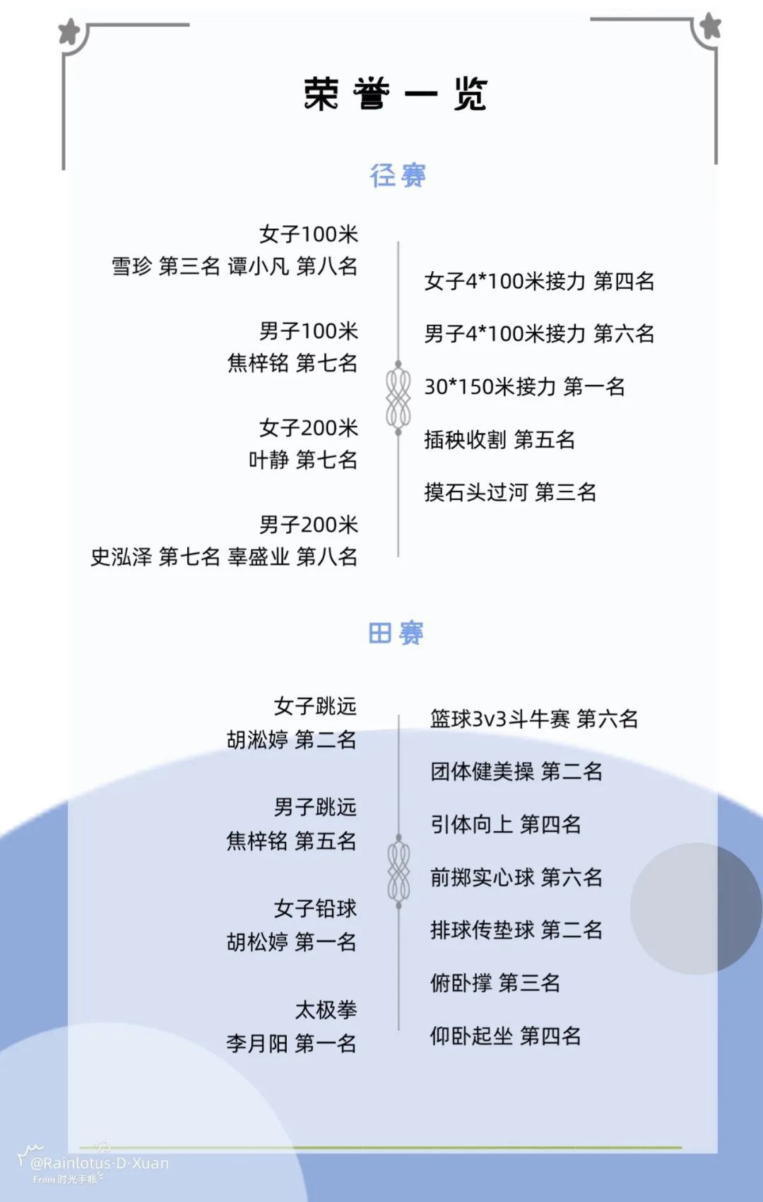 此次成绩的取得,离不开奋力拼搏的运动健儿们、离不开默默付出的研会同学们、离不开坚定支持的学院老师们。在此特别感谢为运动会组织报名、预选、训练和检录的项目领队们,他们分别是王梦晗、鲍卓颖、戴旭婷、党萌、史泓泽、吴润飞、张宁。