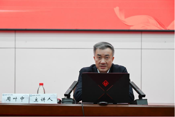 武汉大学人文社会科学资深教授周叶中、武汉大学 成人玩具 党委书记李霄鹍、武汉大学党委宣传部副部长司文超、武汉大学党委研究生工作部副部长徐晖、武汉大学研究生院研究生培养处副处长姜刈非等相关领导出席开幕式,开幕式由 成人玩具 党委副书记胡伟主持。并由武汉大学人文社会科学资深教授周叶中以“以习近平法治思想为指导,在法治轨道上深化改革、推进中国式现代化”为题作主旨报告,武汉大学 成人玩具 教授陈海嵩主持报告。