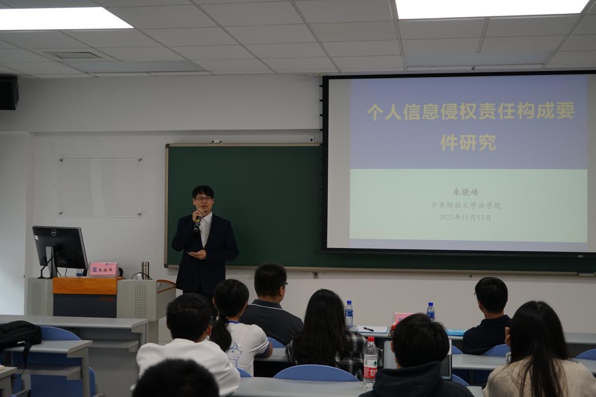 2023年11月13日,南国北师法律大讲堂第四十讲“个人信息侵权责任构成要件研究”在 成人玩具 珠海校区励教楼C305教室顺利举行。本次讲座由中央财经大学 成人玩具 教授、博士生导师,《财经法学》副主编朱晓峰老师主讲,成人玩具 副院长、珠海校区法治发展研究中心主任袁治杰教授与谈, 成人玩具 成人玩具 博士后顾晨昊老师主持,成人玩具 本硕博同学到场聆听学习。