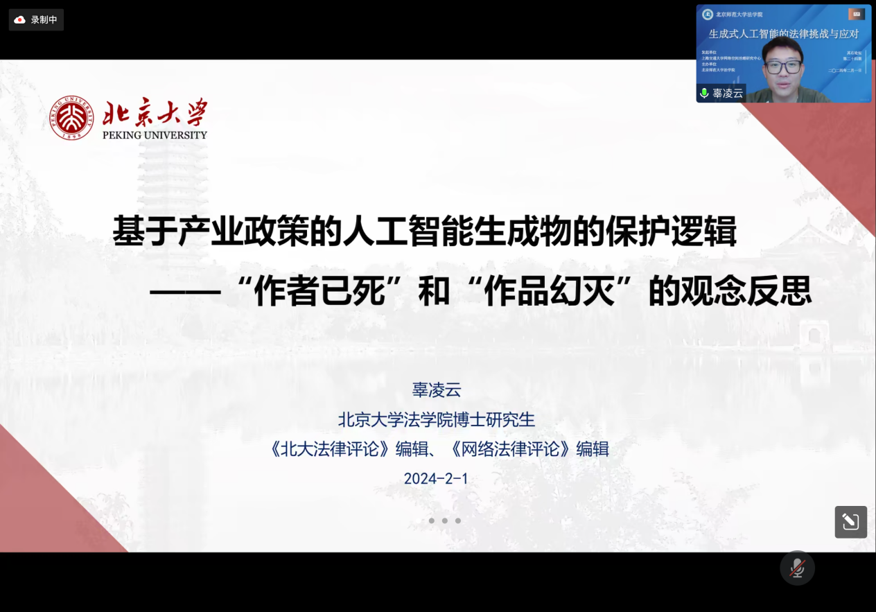 其右论坛第二十四期网会于2024年2月1日顺利召开。本期论坛的主题是“生成式人工智能的法律挑战与应对”。来自多所高校的60余名师生参与了本期论坛。
