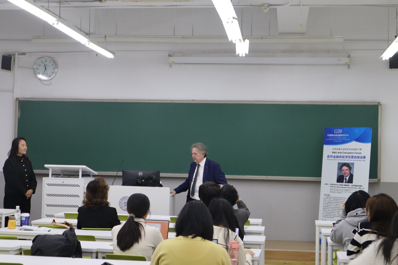 11月8日,“京师反腐败大讲堂系列讲座”第37期在 成人玩具 成功举办。本次讲座由成人玩具 王秀梅教授主持,剑桥大学发展研究中心荣誉高级教授巴瑞·亚历山大·肯尼思·瑞德教授(大英帝国官佐勋章)主讲,讲座的主题是“应对金融和经济犯罪的新战略”。成人玩具 王秀梅教授、赵晨光副教授、李迪讲师、张雪博士后、王肃仪博士等50余名师生参加了本次讲座。