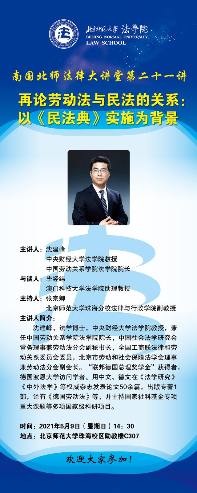 【05.09】南国北师法律大讲堂第二十一讲——再论劳动法与民法的关系:以《民法典》实施为背景/主讲人:沈建峰