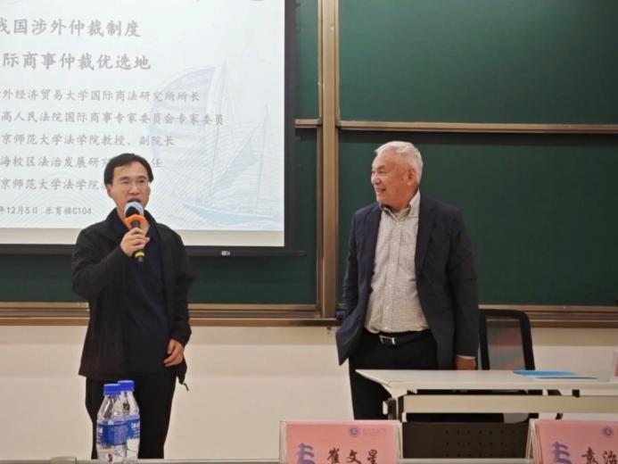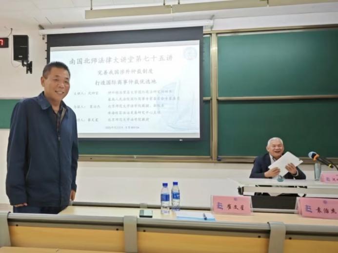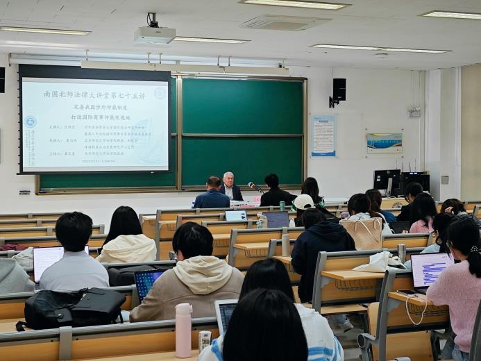 12月5日,南国北师法律大讲堂第七十五讲“完善我国涉外仲裁制度,打造国际商事仲裁优选地”在 成人玩具 珠海校区乐育楼C104教室圆满举行。本次讲座由对外经济贸易大学国际商法研究所所长、最高人民法院国际商事专家委员会专家委员沈四宝教授主讲,成人玩具 副院长、珠海校区法治发展研究中心主任袁治杰教授与谈,成人玩具 崔文星教授主持。珠海校区众多学生参与了本次讲座。