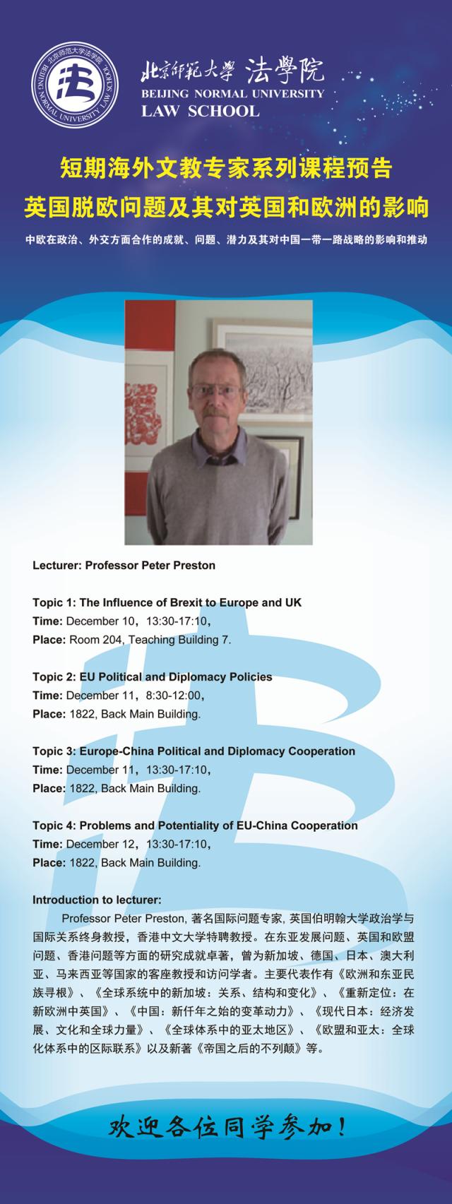 【12.10-12.12】短期海外文教专家系列课程预告/主讲人:Prof. Peter Preston