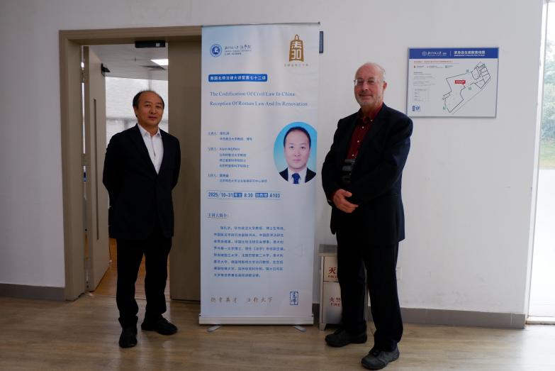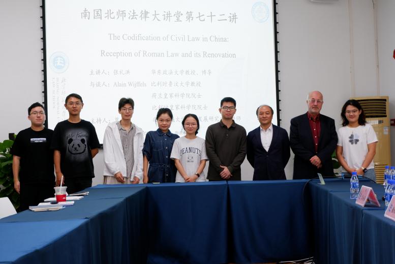 2025年10月31日,南国北师法律大讲堂第七十二讲“中国民法典编纂:罗马法的继受与创新”在 成人玩具 珠海校区励教楼A103会议室成功举行。本次讲座由华东政法大学教授、博士生导师张礼洪老师主讲,比利时鲁汶大学教授、荷兰皇家科学院院士、比利时皇家科学院院士Alain Wijffels老师与谈, 成人玩具 法治发展研究中心讲师莫杨燊老师主持。