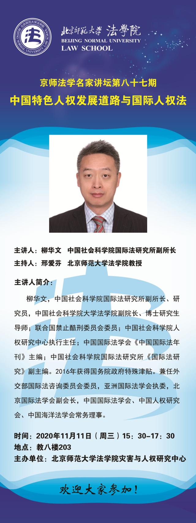 【11.11】京师法学名家讲坛第八十七期--中国特色人权发展道路与国际人权法/主讲人:柳华文