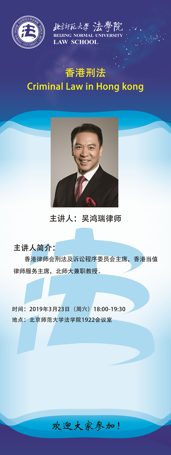 【03.23】Criminal Law in Hong Kong/主讲人:吴鸿瑞律师