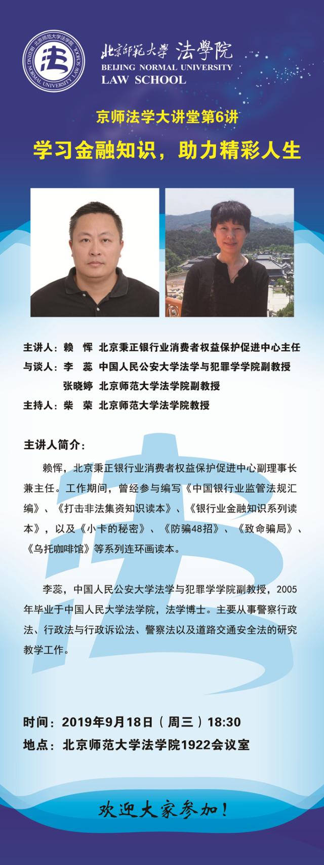 【09.18】京师法学大讲堂第6讲:学习金融知识,助理精彩人生/主讲人:赖恽
