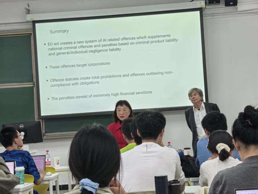 在本次课程中,Albrecht教授重点介绍了《欧盟人工智能法案》这一当今首部全面规制人工智能的法律文件。该法案建立基于风险的分级监管体系,对人工智能系统按风险程度分为“不可接受”“高风险”“有限风险”与“最小风险”四类,并对高风险系统提出严格的法律与合规要求,包括风险评估、透明度义务及市场监督机制等。在责任层面,欧盟以企业为主要责任主体,辅以高额行政罚款以及欧盟成员国在各自刑法中具体刑事责任化制度,形成了“欧盟统一监管与成员国责任衔接”的双层框架。Albrecht教授指出,《欧盟人工智能法案》标志着人工智能法律治理进入制度化阶段,其创新性监管模式对刑法体系的适应性提出了新挑战,但却为各国探索科技与法治的平衡提供了重要启示。
