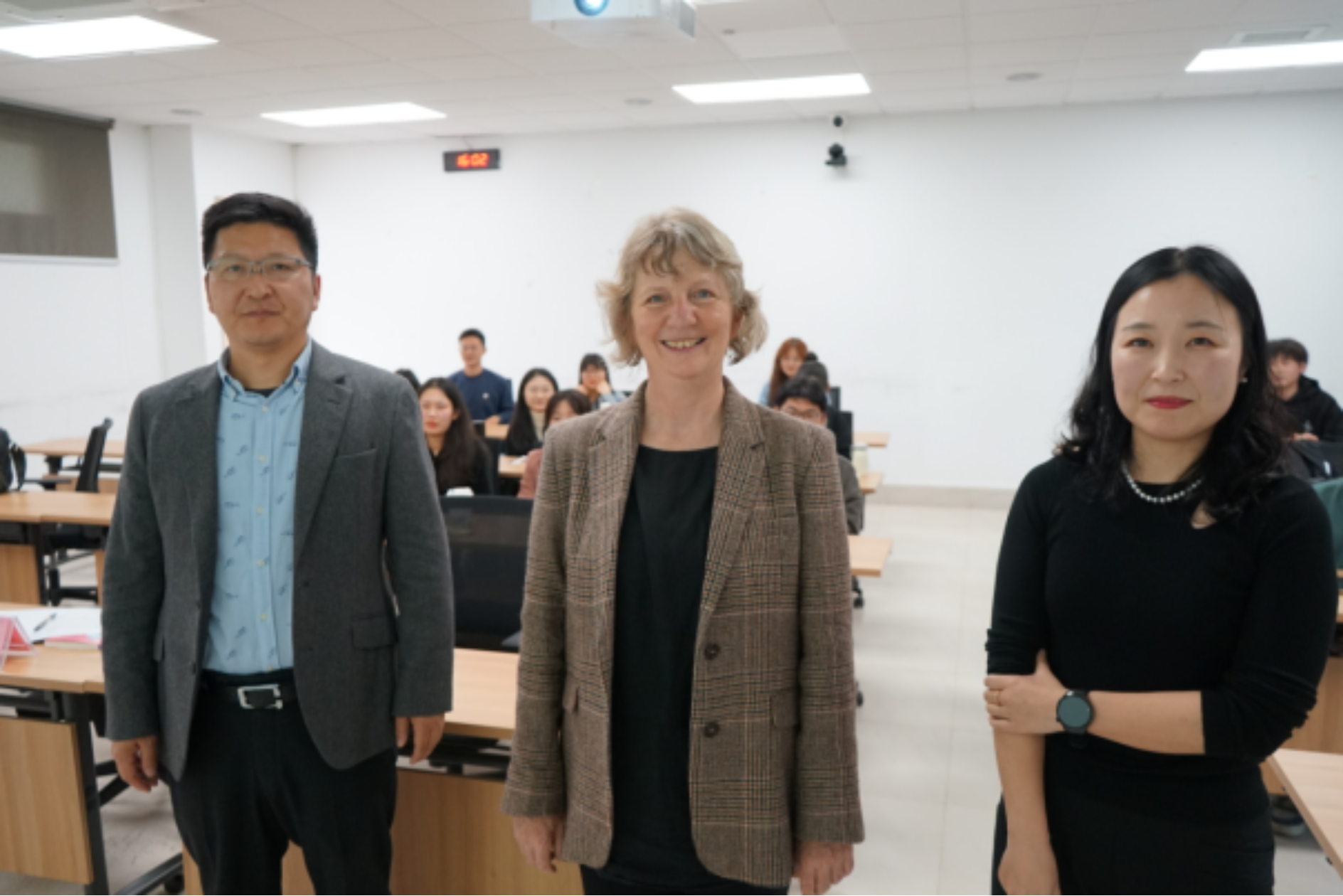 在互动与交流环节,同学们就延迟退休、政府税收与年轻人就业压力的平衡等问题向积极踊跃与Barbara Darimont 教授探讨。Barbara Darimont 教授一一进行了耐心解答。